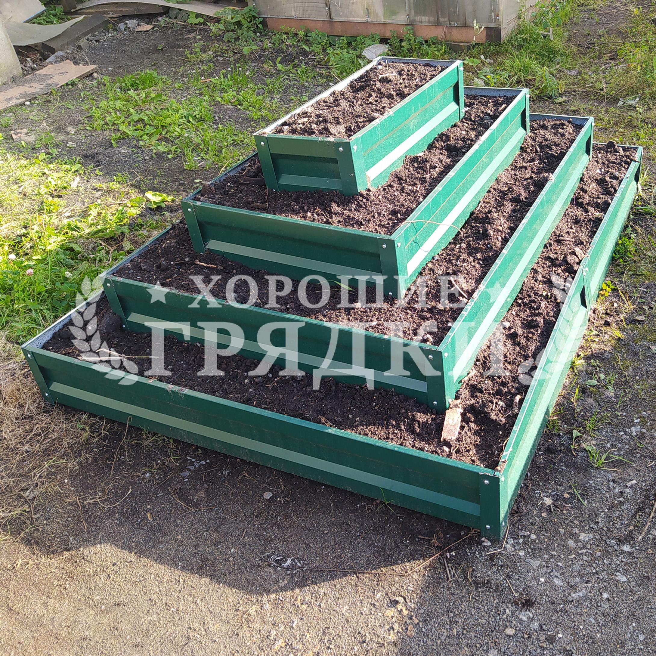 Клумба зеленая «Прямоугольная 3 яруса» 1.6х1.1м — 1.2х0.7м — 0.8х0.3м